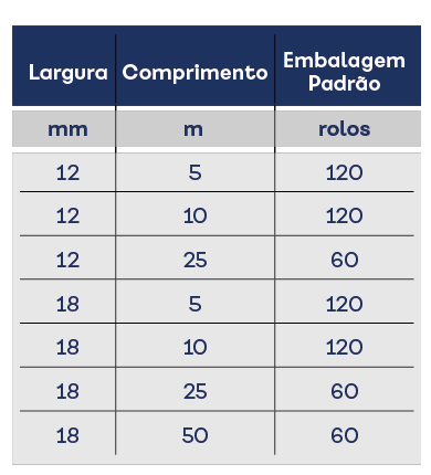 Veja a tabela com nossas medidas fabricadas e as quantidades de rolos por caixa: